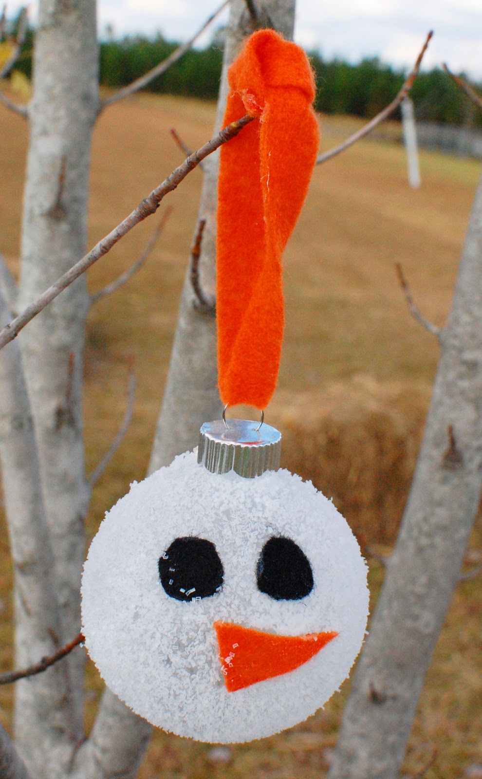 Tie on some white yarn and you have a kid friendly version of a SUPER cute Glittered Snowman Ornament!